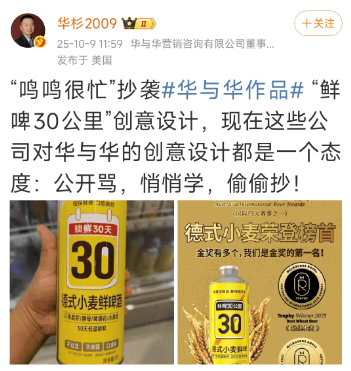 除了屡屡被爆食物平安问题,鸣鸣很忙还陷入抄袭风浪之中,面对着品牌声誉的。2025年10月9日,华取华营销征询无限公司董事长华杉发文称,“鸣鸣很忙”抄袭“华取华”做品“鲜啤30公里”创意设想,并指出当前部门公司对“华取华”的创意设想遍及持“公开骂、悄然学、偷偷抄”的立场。前往搜狐,查看更多。